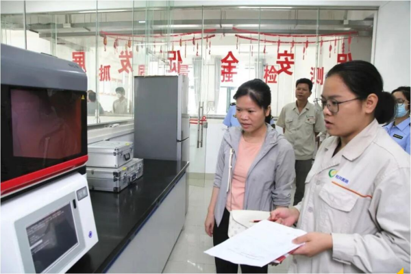 随后,服务团队一行来到粮库化验室,一台重金属快速测定装置成为了讨论的热点。该仪器是粮库对所采购的粮食入库前快速测定重金属含量的重要设备,其测量的准确程度会直接关乎整批粮食质量的判定结果继而影响粮农、企业的切身利益,但目前适用于该类仪器的计量技术规范虽已经颁布但未正式实施。为解决该难题,广西计量院理化技术专家给予现场指导,提出要依据将要实施的计量技术规范,选用适用的计量标准对仪器进行计量性能的评估,以解决企业的燃眉之急,同时,为即将实施的技术规范做好充分准备,随时为粮油行业的其他企业提供必要的计量凯发k8真人娱乐的技术支持,助推粮农和企业的利益和质量的双保障。