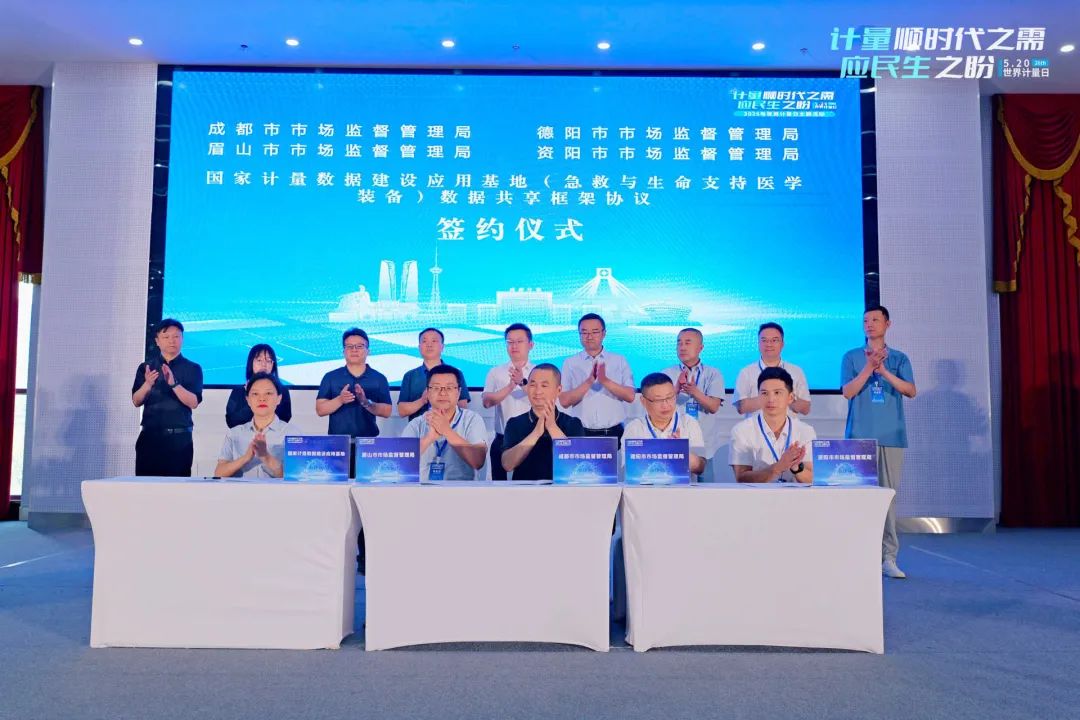 成德眉资市场监管局在省市场监管局和四地卫健委的见证下,共同签署《关于国家计量数据建设应用基地(急救与生命支持医学装备)数据共享的框架协议》。同时《成都市计量强制检定状况白皮书》正式发布。