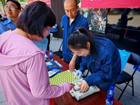 便民服务惠民生。相关法定计量检定机构在活动现场设立便民服务台,为市民免费检定血压仪、体重秤、电子计价秤,向群众普及家用医疗设备、电子秤常识并指导正确使用方法,确保健康监测数据可靠。许多市民携带家用仪器前来检定,现场共计检定各类计量器具95台,受到群众一致好评。
